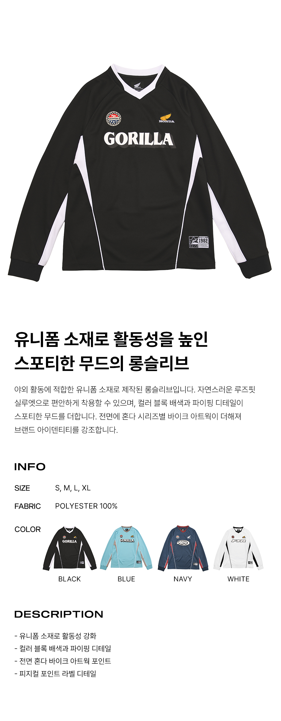 혼다 모터사이클 아트워크 컬러 블록 롱 슬리브 블랙