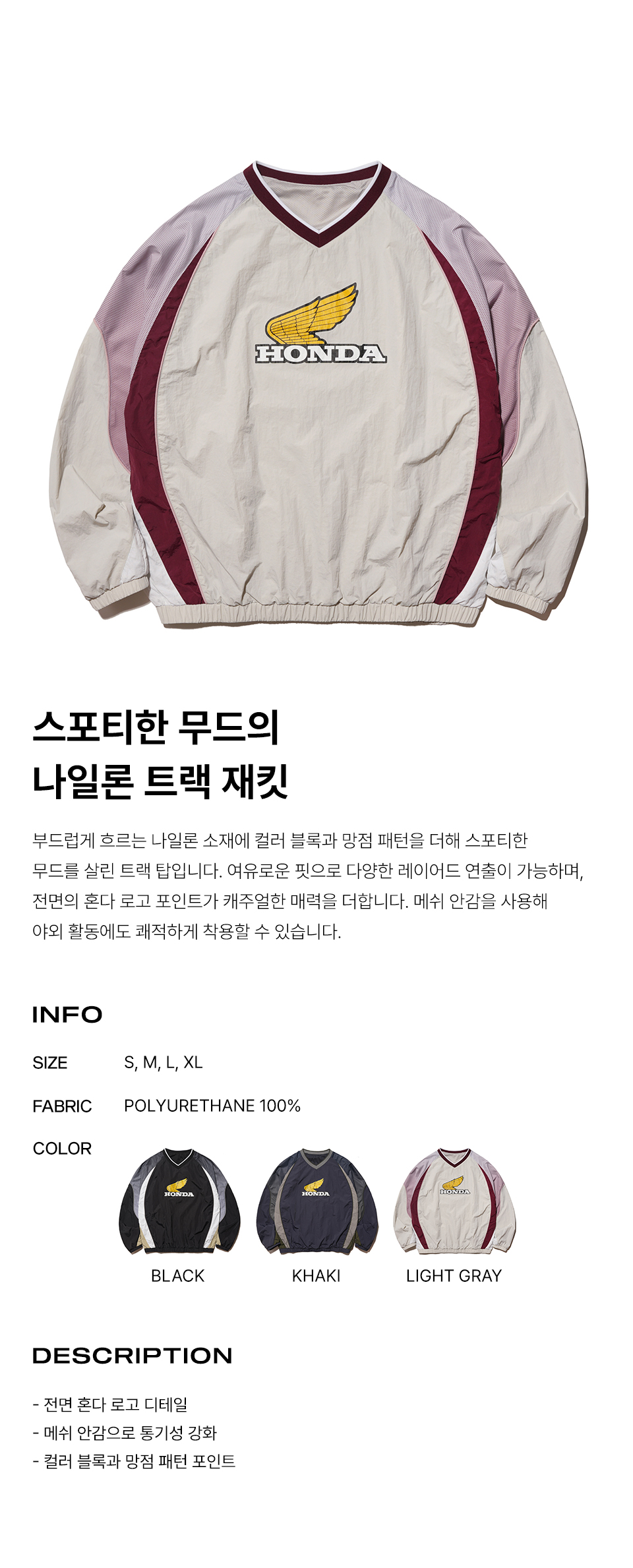 혼다 빈티지 로고 스피드 트랙 나일론 롱 슬리브 라이트 그레이