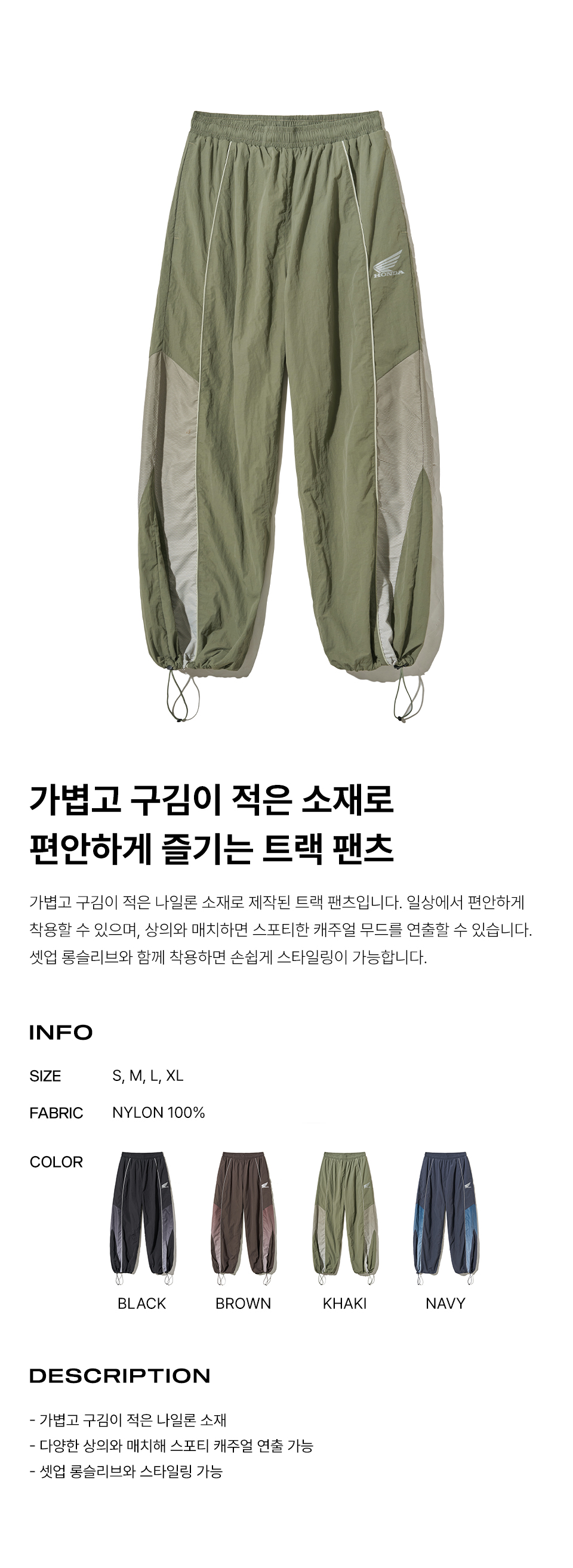혼다 스피드 트랙 솔리드 나일론 팬츠 카키