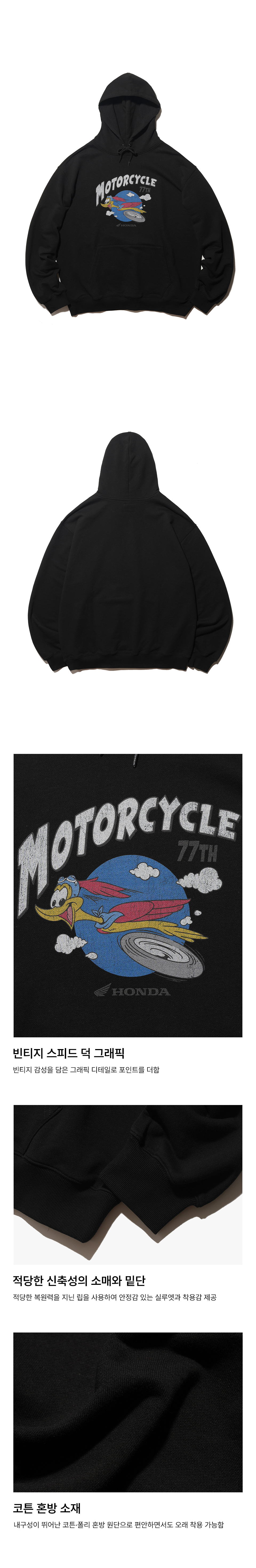 혼다 빈티지 플라잉 덕 후디 블랙