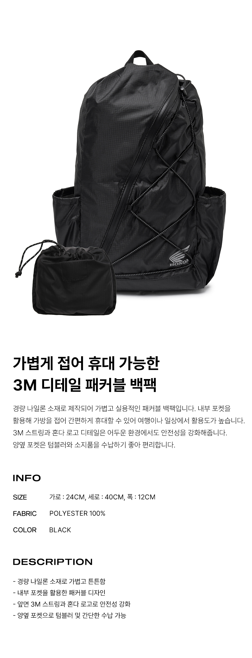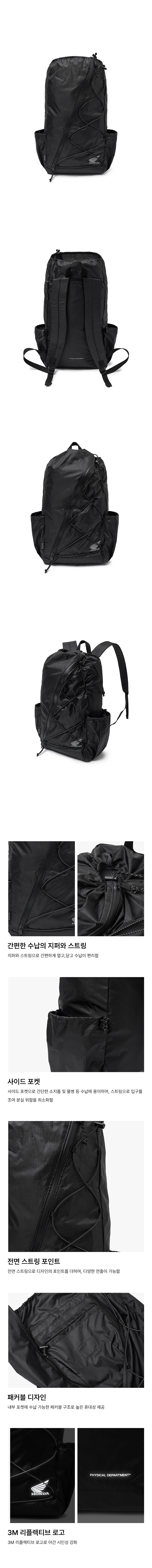 혼다 오리지널 윙 로고 하프 메쉬 백 블랙