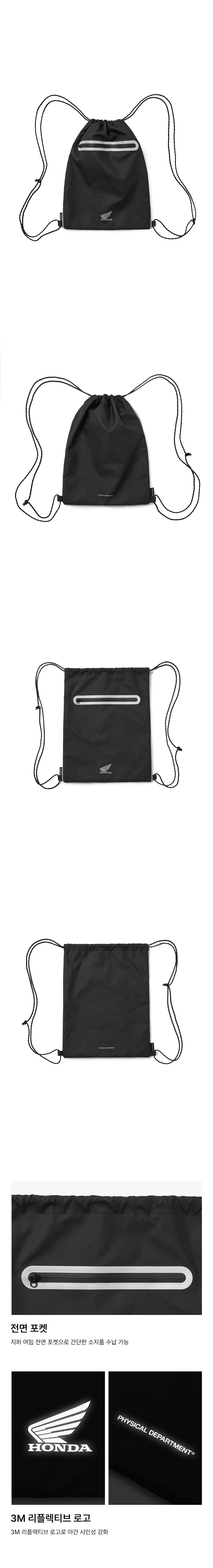 혼다 오리지널 윙 로고 워터프루프 드로우스트링 백 블랙