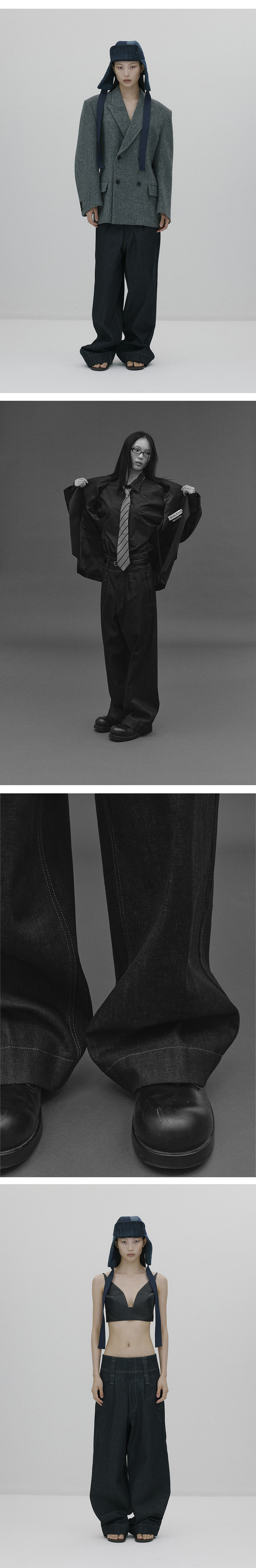 높은 밀도감의 묵직한 중량감이나 부드러운 터치와 사전수축(pre-shrunk)가공된 인디고 소재의 와이드 레그 팬츠 굵고 긴 벨트고리와 과장된길이의 지퍼와 두개의 걸고리 여밈의 와이드핏 하이라이즈 팬츠 입니다. 선호하는 핏의 취향에 따라 사이즈를 선택하여 스타일링 할 수 있습니다. 물기 있는 손이나, 연한색상의 옷과 가방에는 인디고 염료가 묻어 날 수 있으니 주의 바랍니다 반드시 뒤집어 단독 세탁해 주세요.