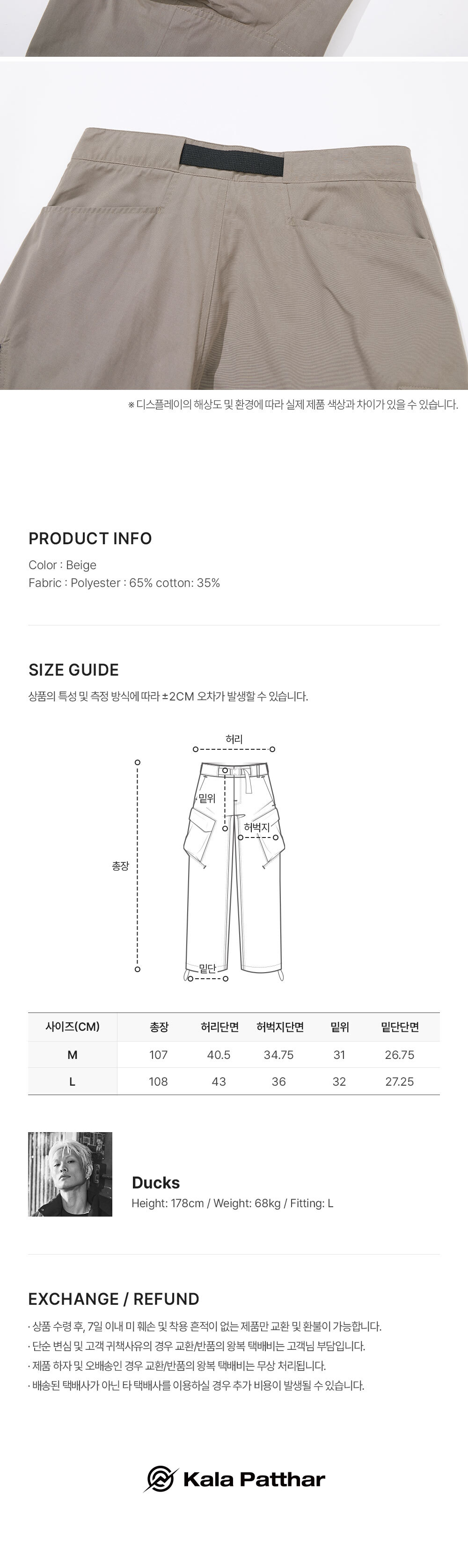 칼라파타르 벨티드 시그니처 와이드 카고 팬츠 베이지