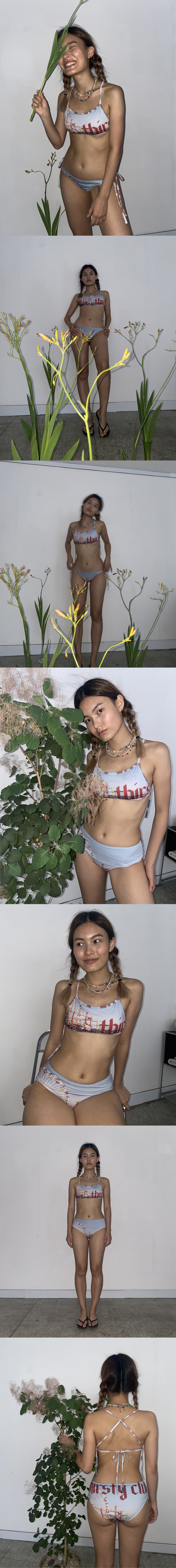 스퀘어 비키니 탑으로, 삼각 비키니 탑이 다소 부담스러우신 분들께 추천드립니다. 길이가 긴 끈으로 홀터, 크로스 등 다양한 타입으로 묶어서 연출이 가능합니다. 로스앤젤레스의 시원한 산타모니카 해변을 필름카메라로 담았습니다. 떨스티클럽만의 빈티지한 그래픽이 포인트가 됩니다. 모든 수영복 제품에는 탈부착 가능한 패드가 함께 배송됩니다. 수영복 특성상 단독 착용을 권장합니다.