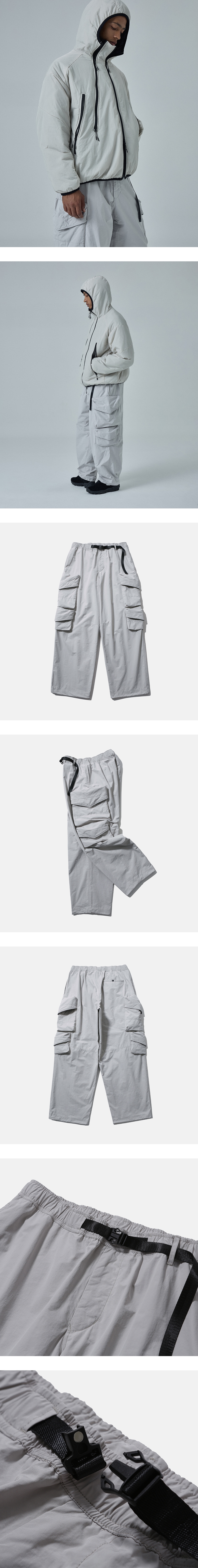 스위스 군의 저격수 군복을 베이스로 한 팬츠 · 여유 있는 넉넉한 실루엣. · 코튼/나일론 혼방 원단 사용. · 발열 기능이 있는 전체 안감 사양. · 플랩이 달린 스냅 여밈의 입체적인 패치 포켓. · 신축성 있는 내장형 이밴드와 사이즈 조절이 가능한 허리 벨트 사양. · 실루엣 조절이 가능한 밑단 스트링으로 2가지 타입으로 연출 가능.