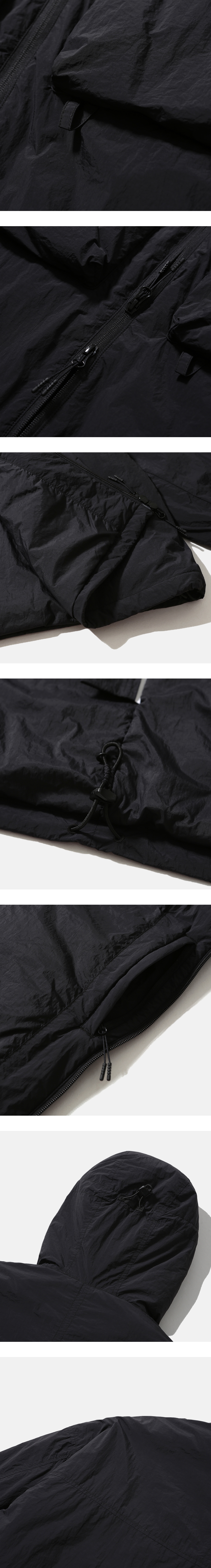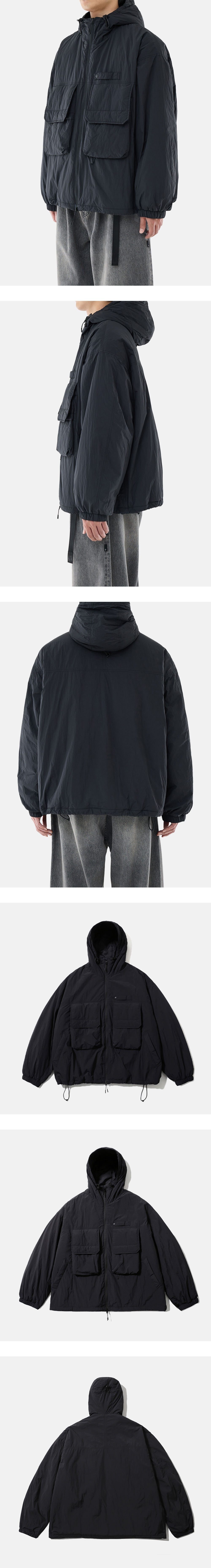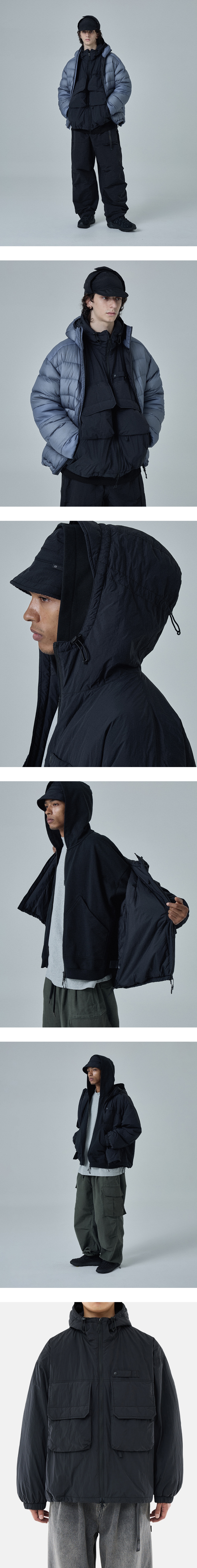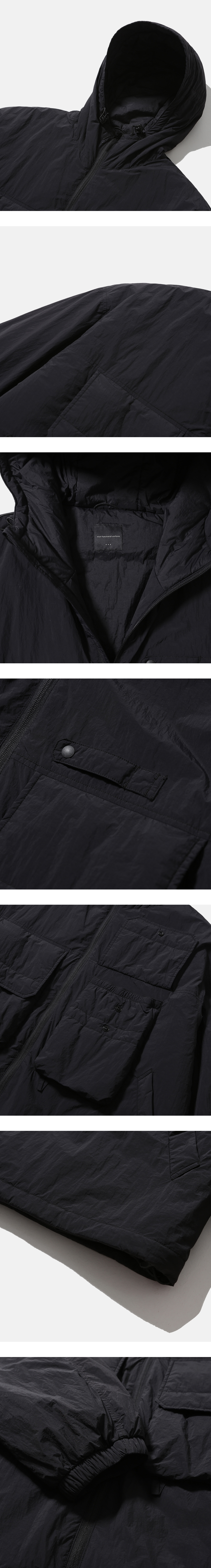 빈티지 피싱 웨어를 베이스로 한 후드 파카 · 넉넉한 느낌의 루즈한 실루엣. · 가볍고 바스락거리는 나일론 원단 사용. · 습기는 배출하고 공기를 잡아두어, 쾌적하고 따뜻한 신슐레이트 충전재 사용. · 2웨이 지퍼를 사용한 앞여밈 사양. · 사이드 웰트 포켓과 넉넉한 사이즈의 패치 포켓 사양. · 입구 부분 둘레 조절이 가능한 후드 스트링 사양. · 신축성 있는 이밴드가 내장되어 있는 소매 커프스 사양. · 바람을 막아주며, 실루엣 조절이 가능한 밑단 스토퍼 사양.