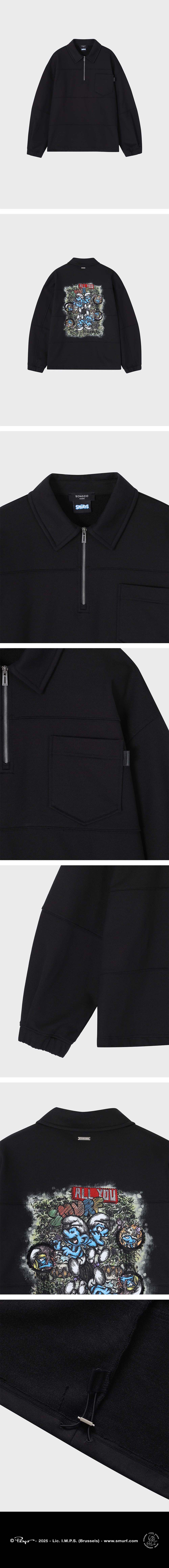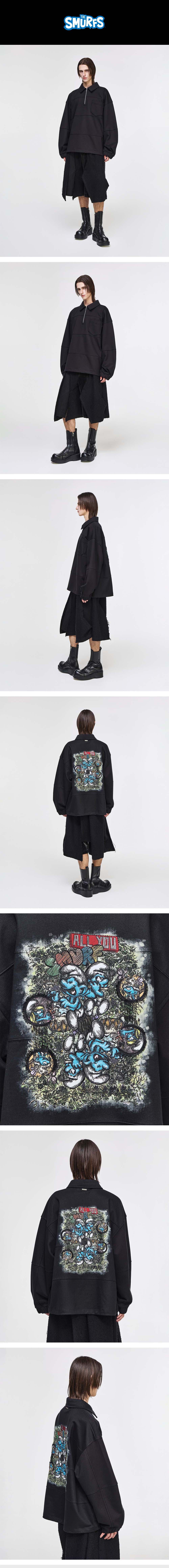 - SONGZIO HOMME 스머프 리플렉션 카라넥 스웻 - 내추럴한 터치감의 코튼 패브릭 - 전면 가슴 아웃 포켓 구성 - 아웃 포켓 사이드 SONGZIO BLACK LETHER LABEL - 후면 실크 스크린 프린트와 엠브로이드 기법의 SMURF REFLECTION 아트워크 - 후면 SONGZIO PARIS SILVER METAL - 밑단 스트링 디테일 - 오버사이즈 실루엣 MADE IN KOREA