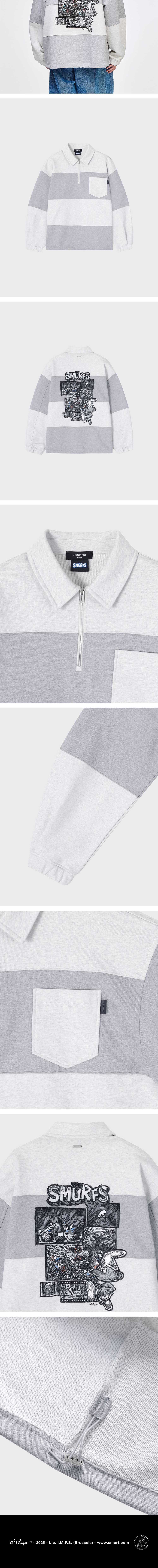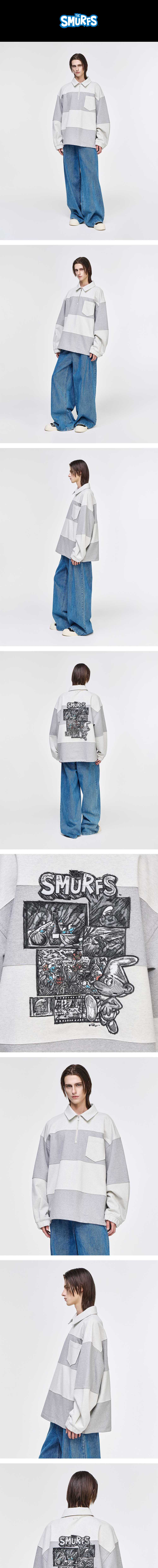- SONGZIO HOMME 파노라마 스머프 카라넥 스웻 - 내추럴한 터치감의 코튼 패브릭 - 전면 가슴 아웃 포켓 구성 - 아웃 포켓 사이드 SONGZIO BLACK LETHER LABEL - 후면 실크 스크린 프린트와 엠브로이드 기법의 PANORAMA SMURF 아트워크 - 후면 SONGZIO PARIS SILVER METAL - 밑단 스트링 디테일 - 오버사이즈 실루엣 MADE IN KOREA