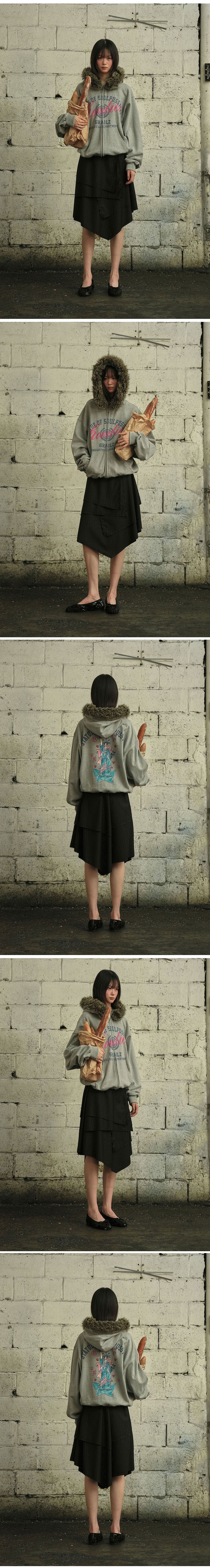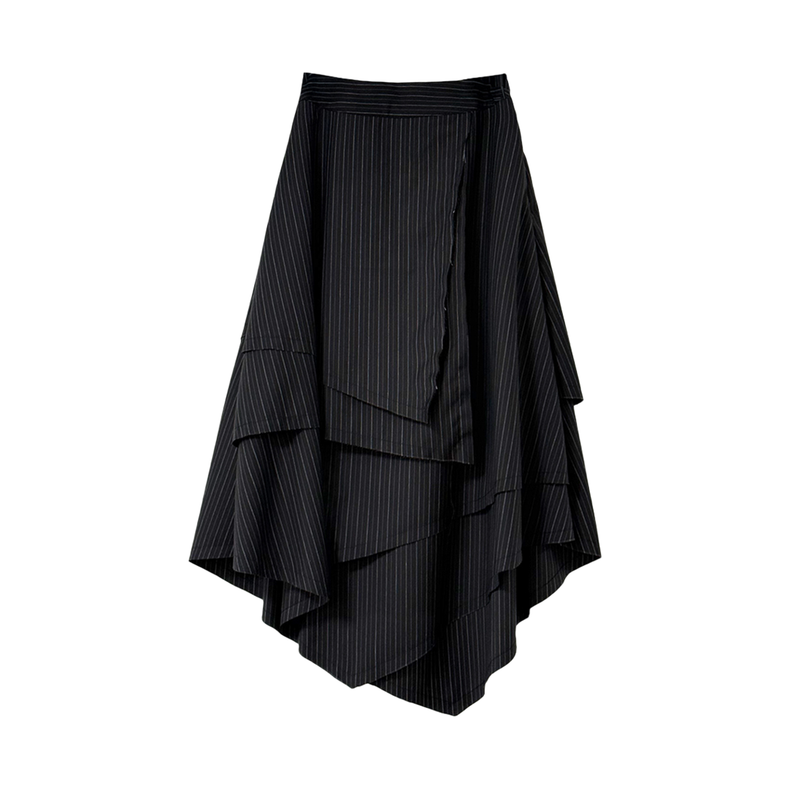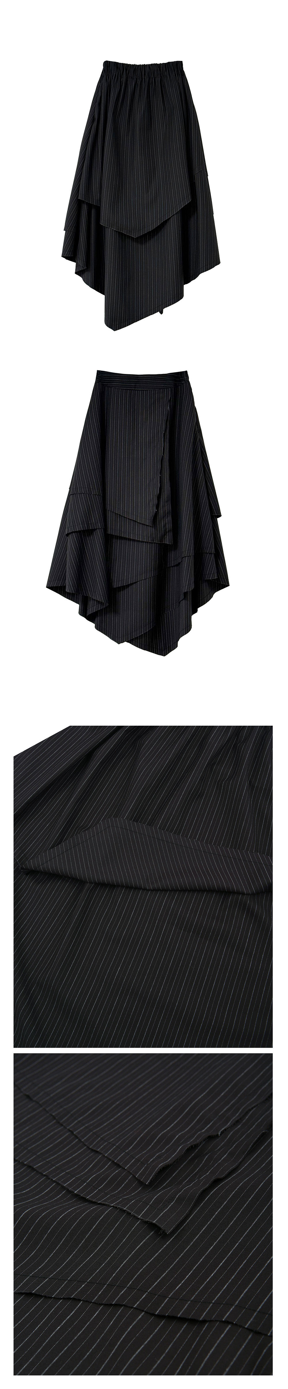 그레일즈 로우 컷 오버랩 스커트 블랙 스트라이프