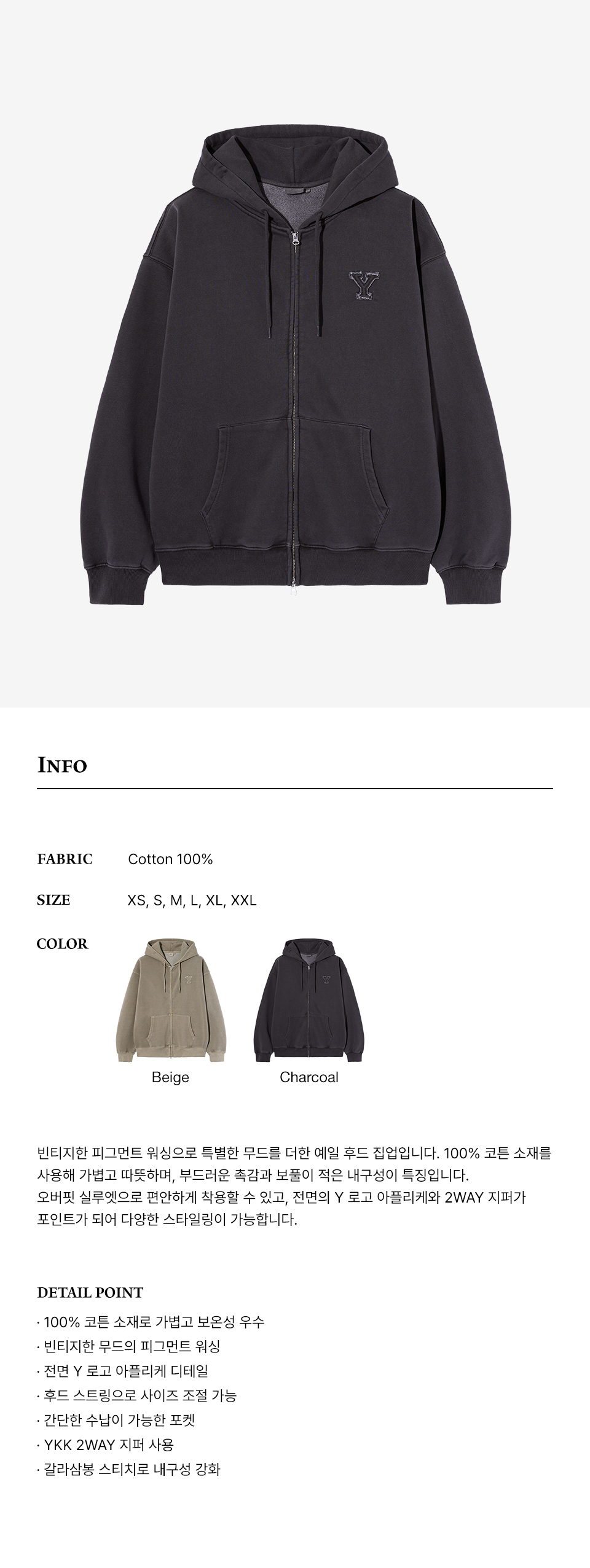 Yale Y Logo Pigment Hoodie Zip-Up Charcoal