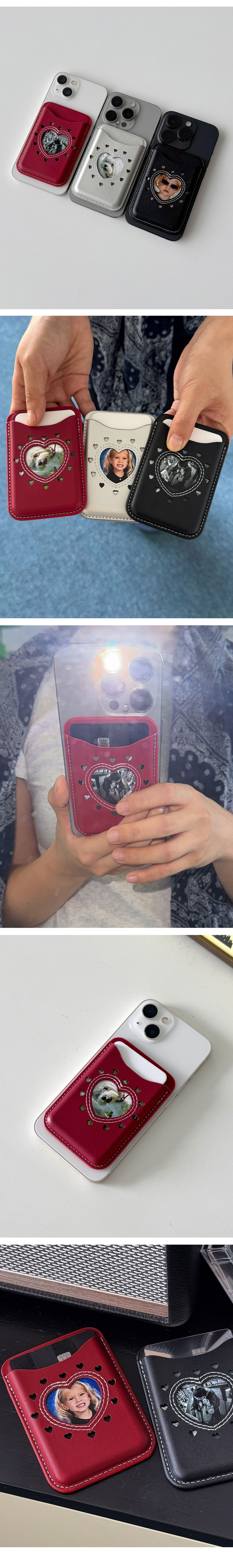 르마스크 하트홀 강력자석 포토 맥세이프 가죽 카드지갑 카드 2장 레드