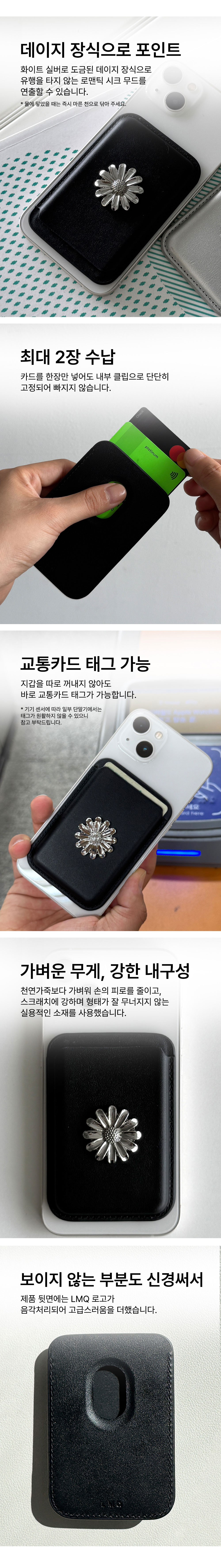 르마스크 데이지 강력자석 맥세이프 가죽 카드지갑 카드 2장 블랙