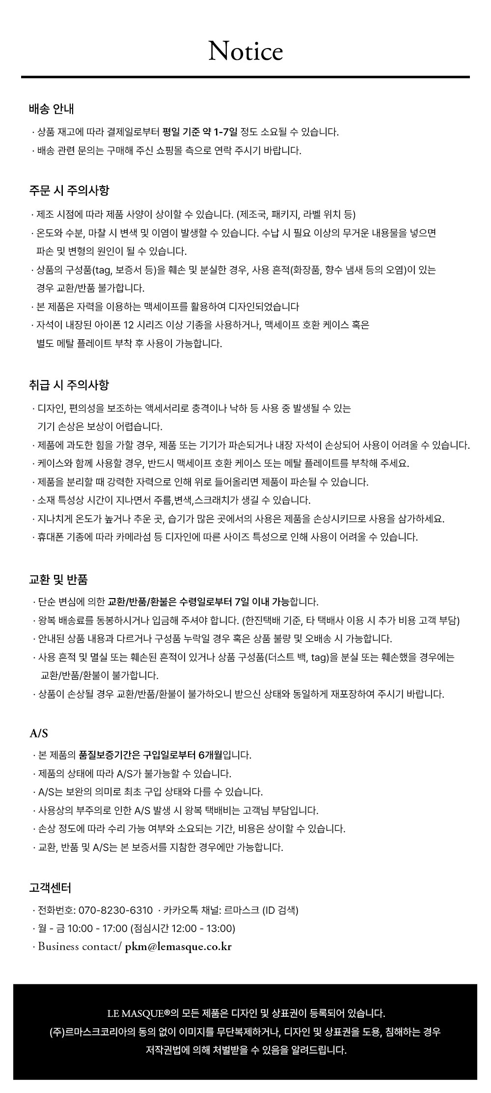교환 및 반품 안내
