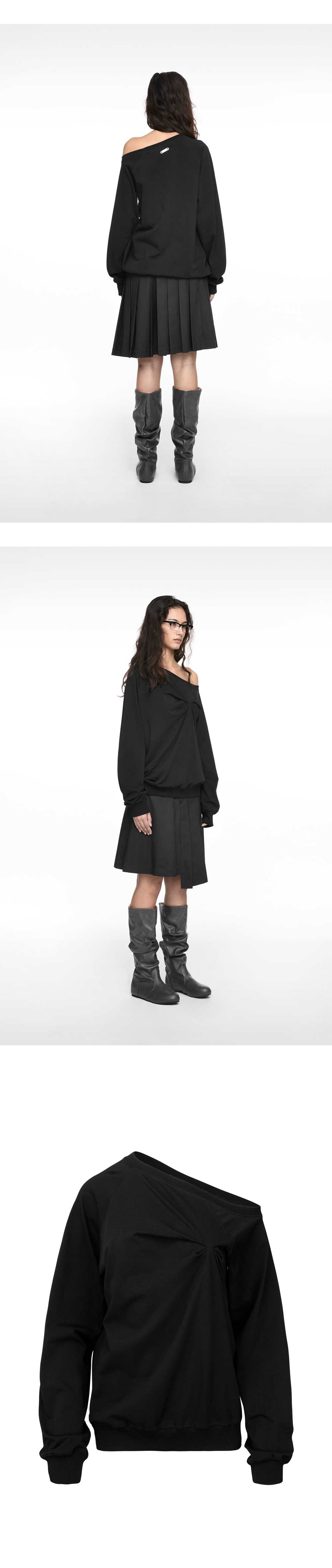 *사은품 소진시까지 구매한 고객께 키링 또는 거울 중 하나 랜덤으로 사은품 제공 *반품 교환시 사은품 반송 필수 ㅤ 드레이핑이 포인트인 나체 우먼 핀치드 롱슬리브 블랙입니다. - 언발란스 오프숄더 티셔츠 - 세미 오버사이즈 실루엣 - 드레이핑 프론트 디테일 - 뒷목 시그니처 니켈 택 디테일 *모델 스펙 : 170cm / TOP 44-55 / BOTTOM 24 (1 SIZE 착용)