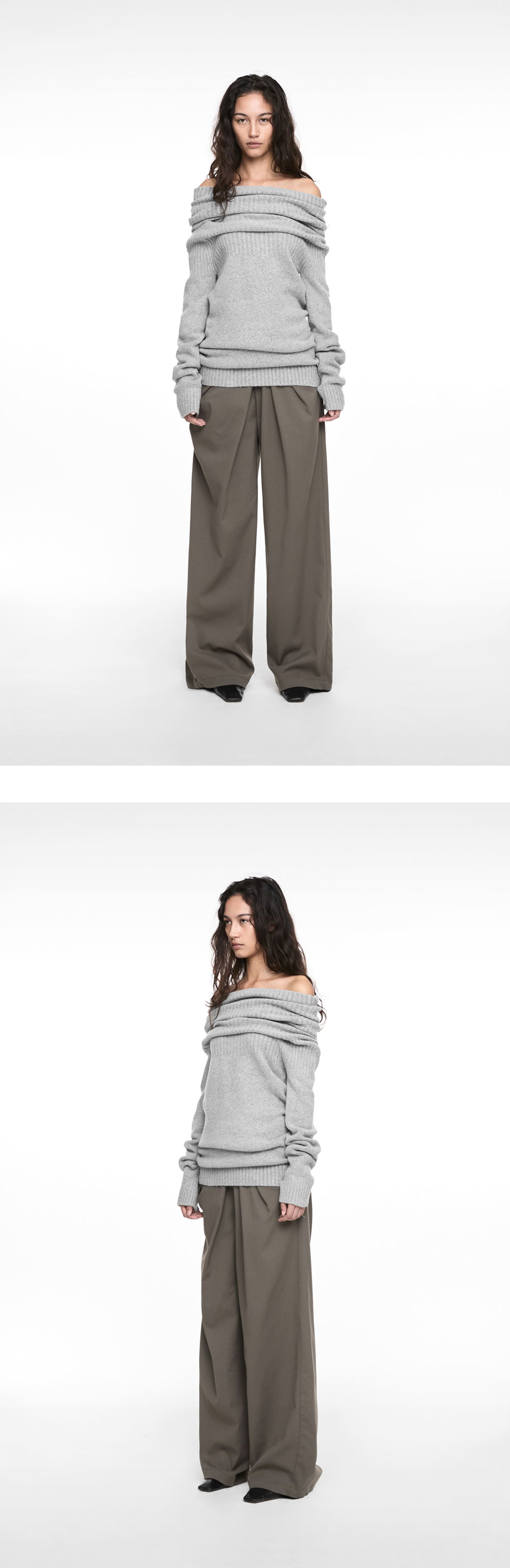 나체 우먼 2웨이 숄 니트 멜란지 그레이 - 25FW