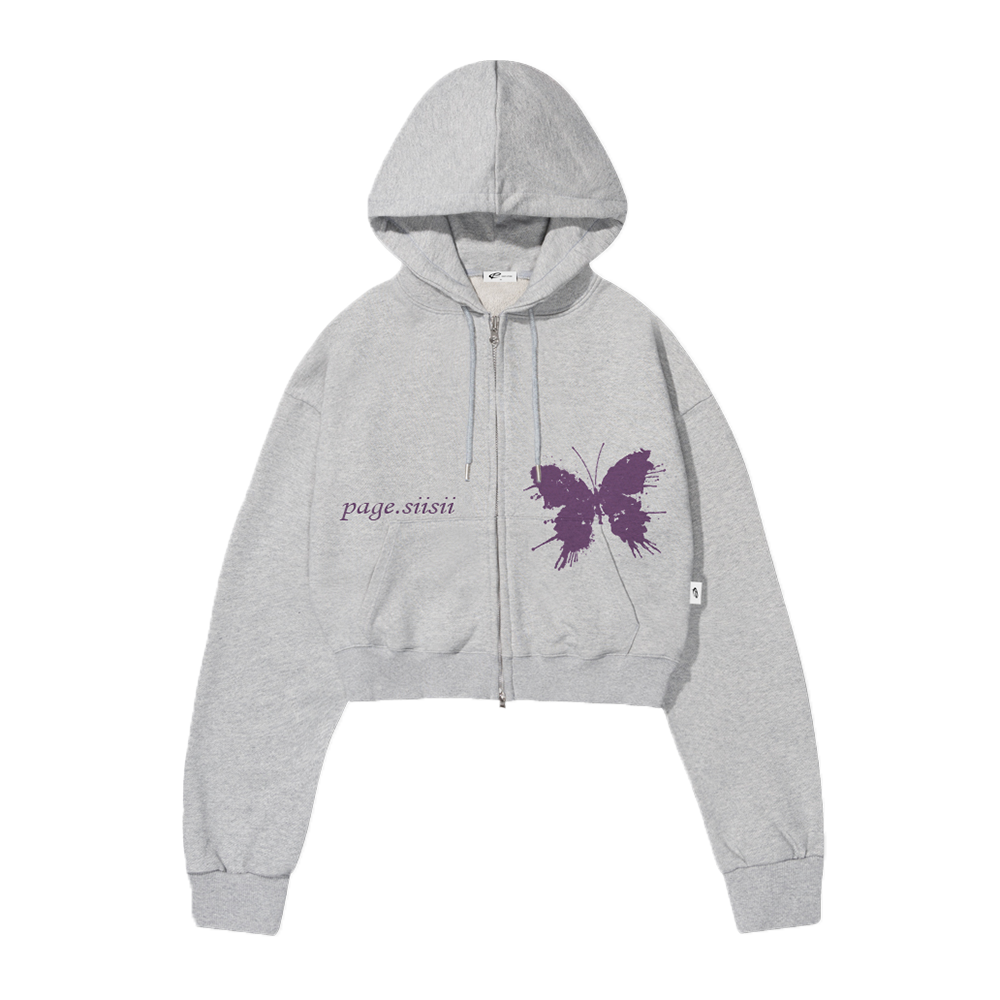 페이지시시 섀도우 버터플라이 프린트 크롭 후드집업 그레이
