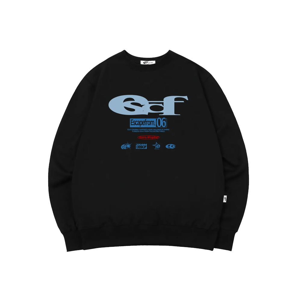 이스케이프프롬 ESCF 로고 콜라주 프린트 맨투맨 블랙
