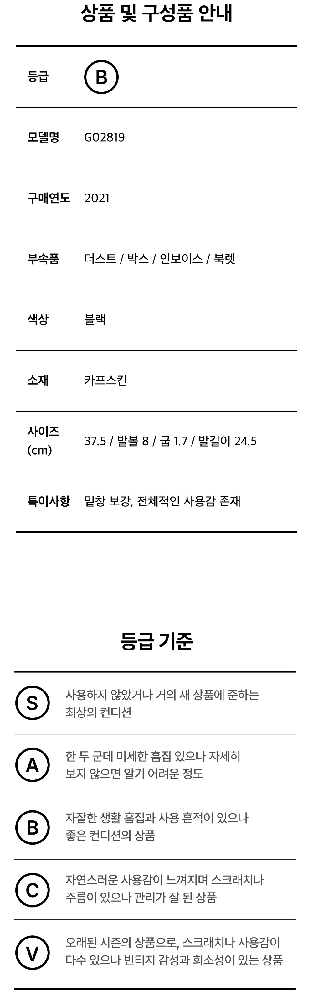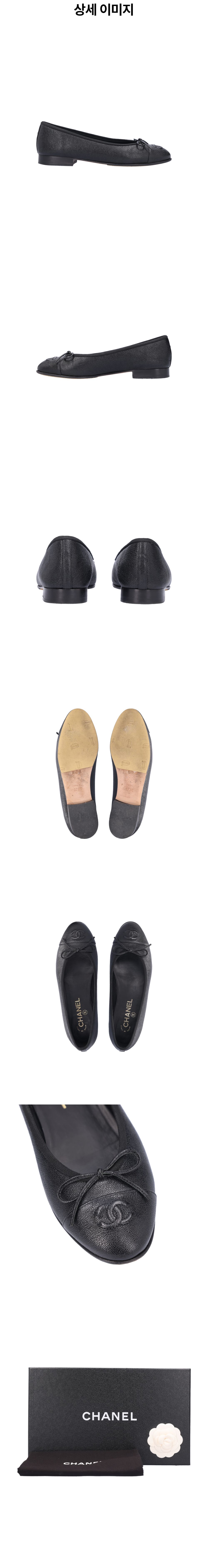 샤넬 G02819 발레리나 플랫 슈즈 카프스킨 블랙 37.5 사이즈