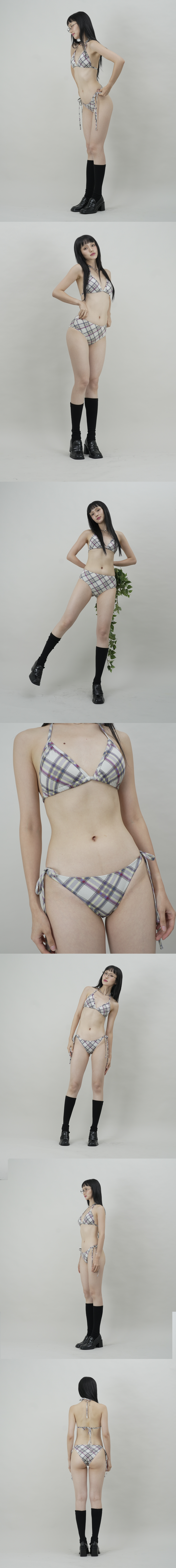기본적인 형태의 삼각 비키니 탑입니다. 스테디한 핏의 대표적인 비키니로 자신있게 본연의 아름다움을 뽐내보세요. 쿨한 느낌의 깔끔한 체크 패턴을 비키니로 즐겨보세요. 모든 수영복 제품에는 탈부착 가능한 패드가 함께 배송됩니다.