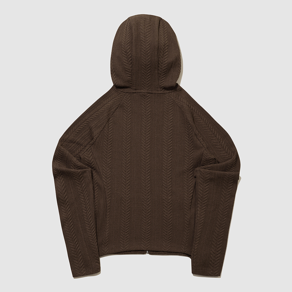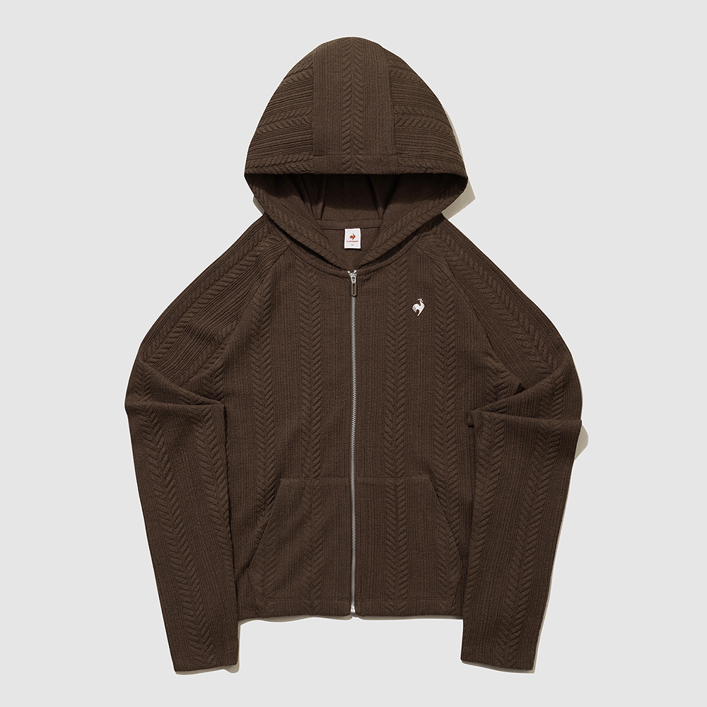 르꼬끄 스포르티브 여성 슬림핏 케이블 자가드 후드 집업 - 브라운(QQ322OFT91)