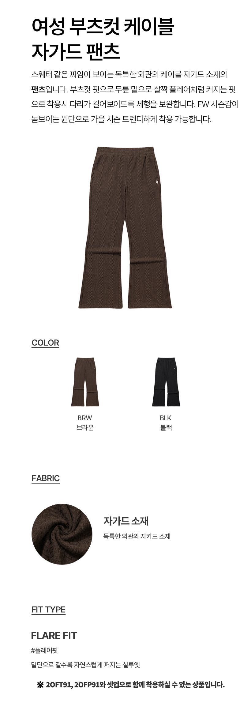 르꼬끄 스포르티브 여성 부츠컷 케이블 자가드 팬츠 - 브라운(QQ322OFP92)