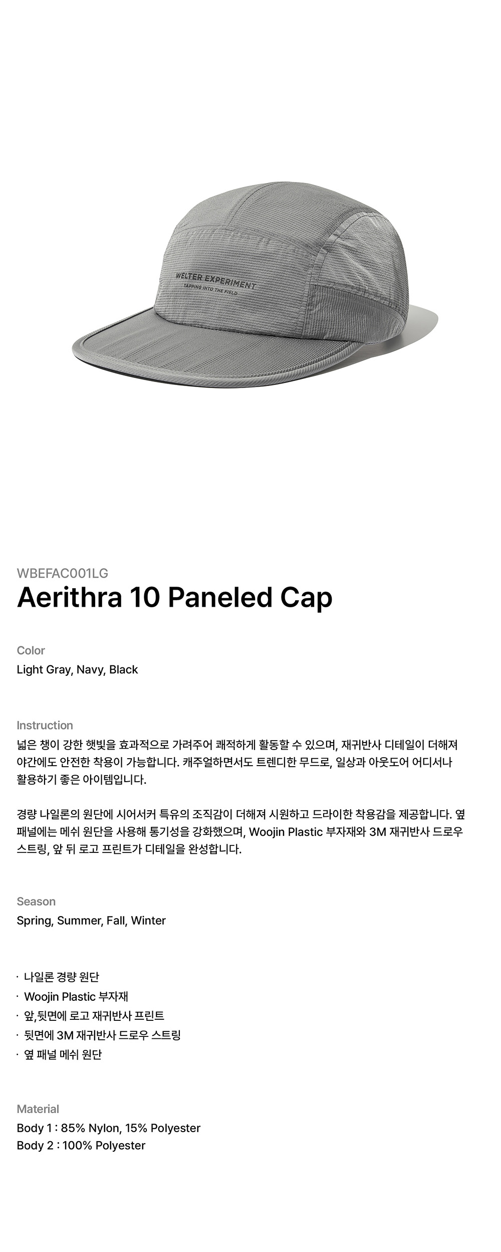 웰터 익스페리먼트 아리스라 10 패널드 캡 라이트 그레이