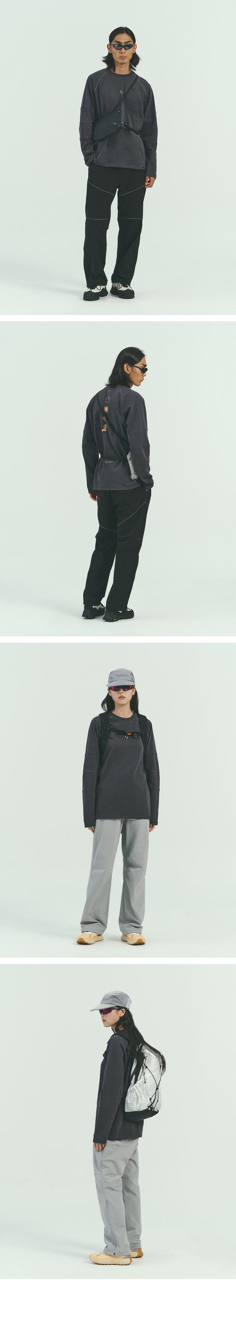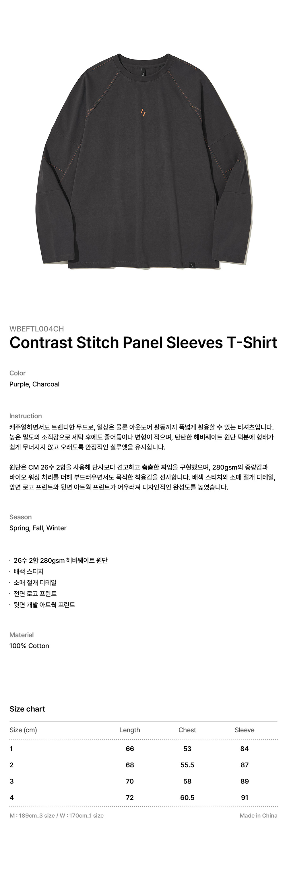 웰터 익스페리먼트 콘트레스트 스티치 파넬 슬리브 티셔츠 차콜