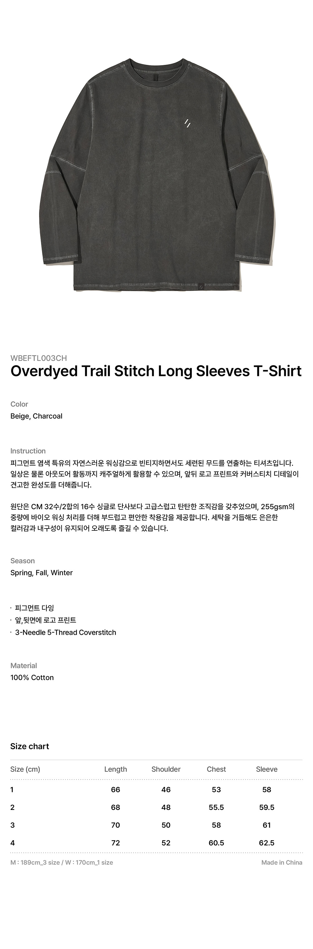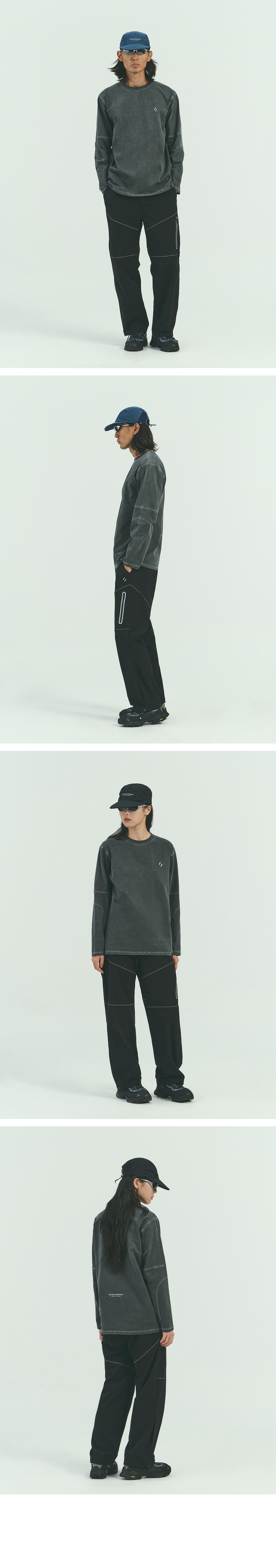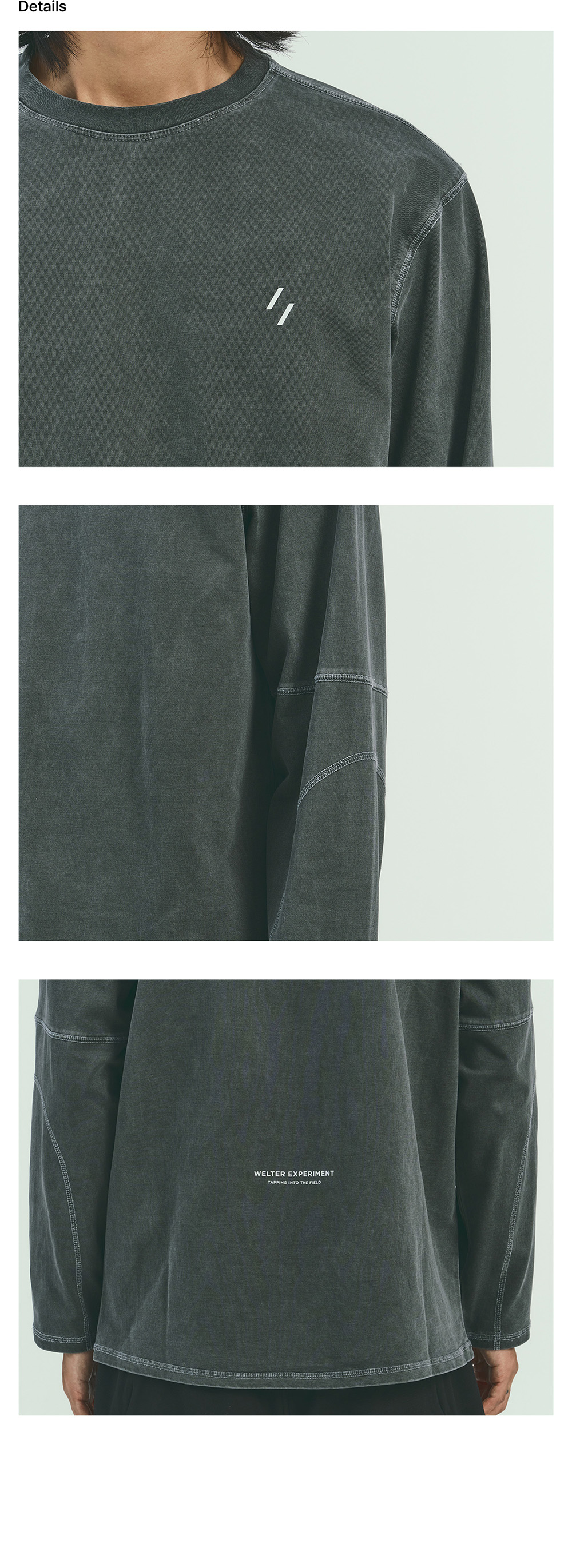 웰터 익스페리먼트 오버다이드 트레일 스티치 롱 슬리브 티셔츠 차콜