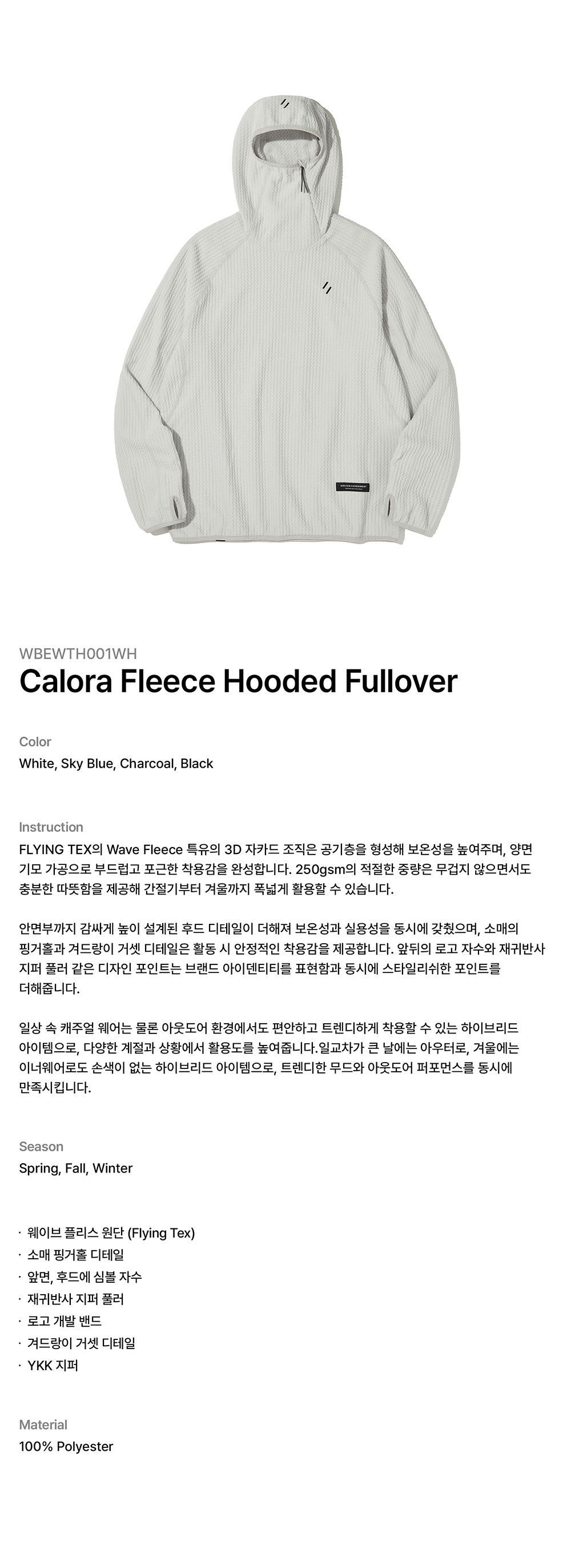 웰터 익스페리먼트 카로라 플리스 후드 풀오버 화이트