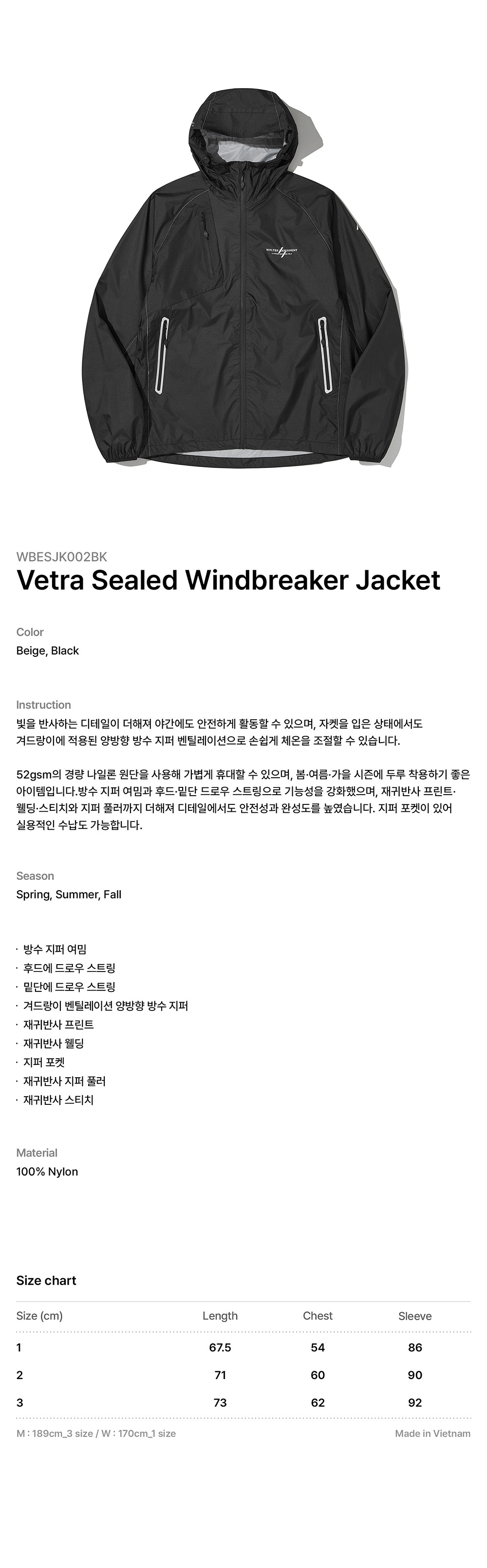 웰터 익스페리먼트 베트라 실드 윈드브레이커 자켓 블랙