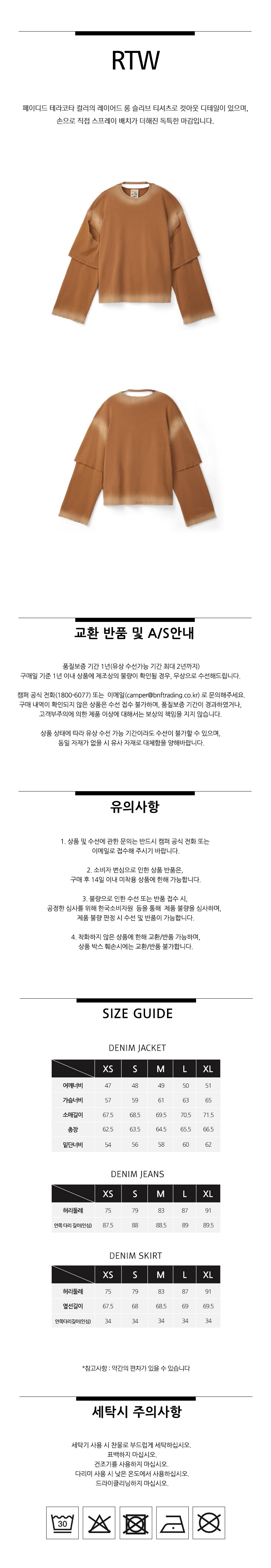 캠퍼 랩 워시드 레이어드 롱 슬리브 테라코타
