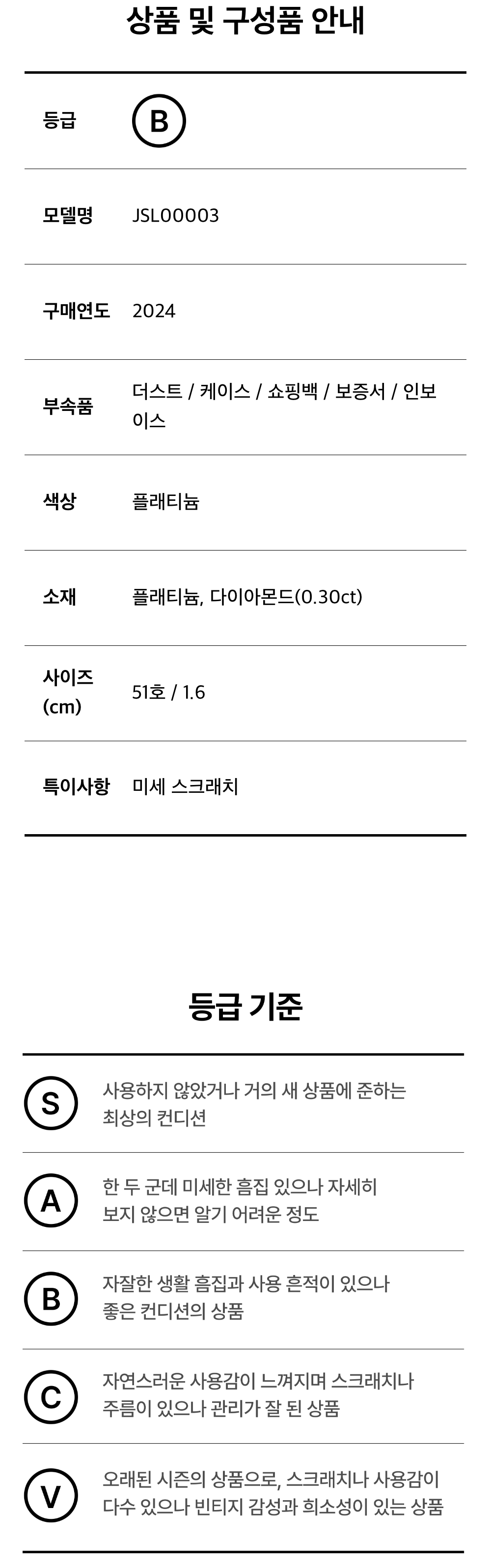 부쉐론 JSL00003 플래티늄 다이아몬드 링 51 사이즈