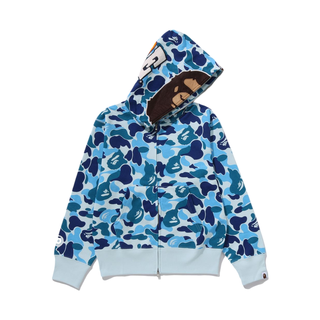 (W) 베이프 182 ABC 카모 세컨드 에이프 풀 집 후드 블루
