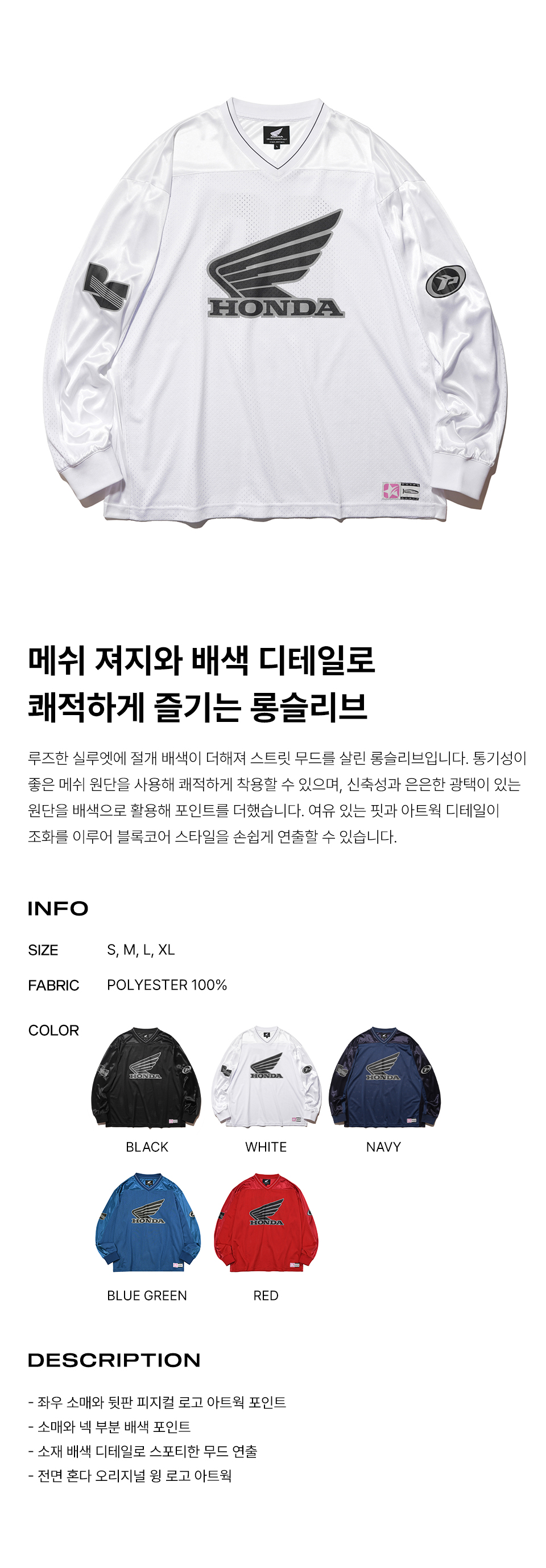 혼다 오리지널 윙 로고 메쉬 롱 슬리브 화이트