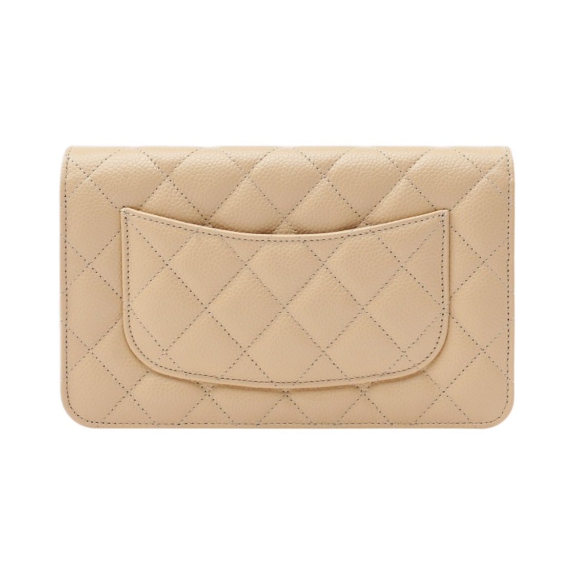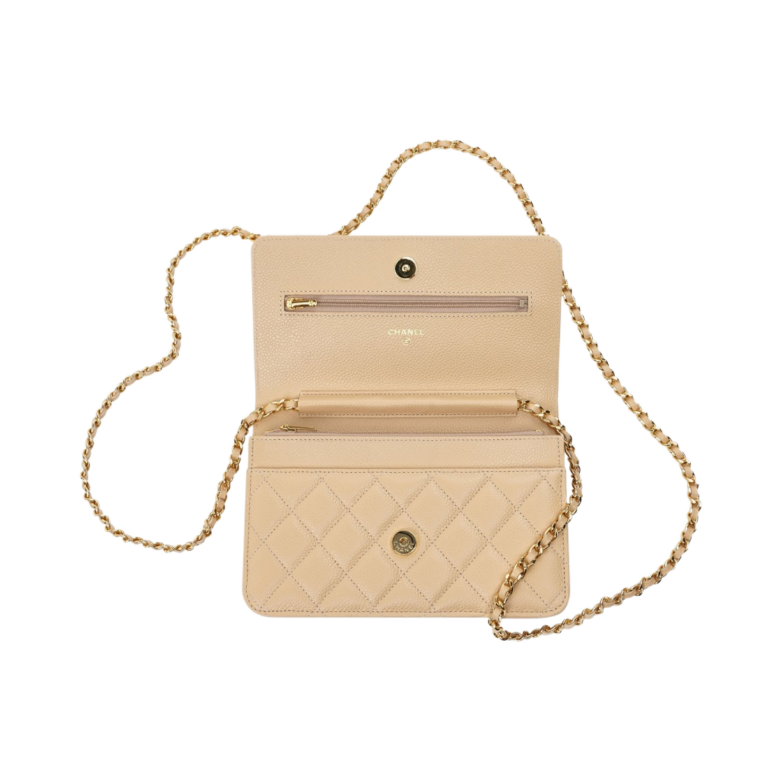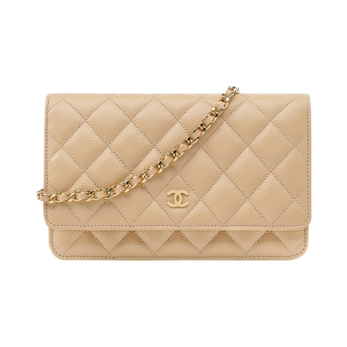 샤넬 클래식 체인 지갑 그레인드 카프스킨 & 골드 메탈 베이지