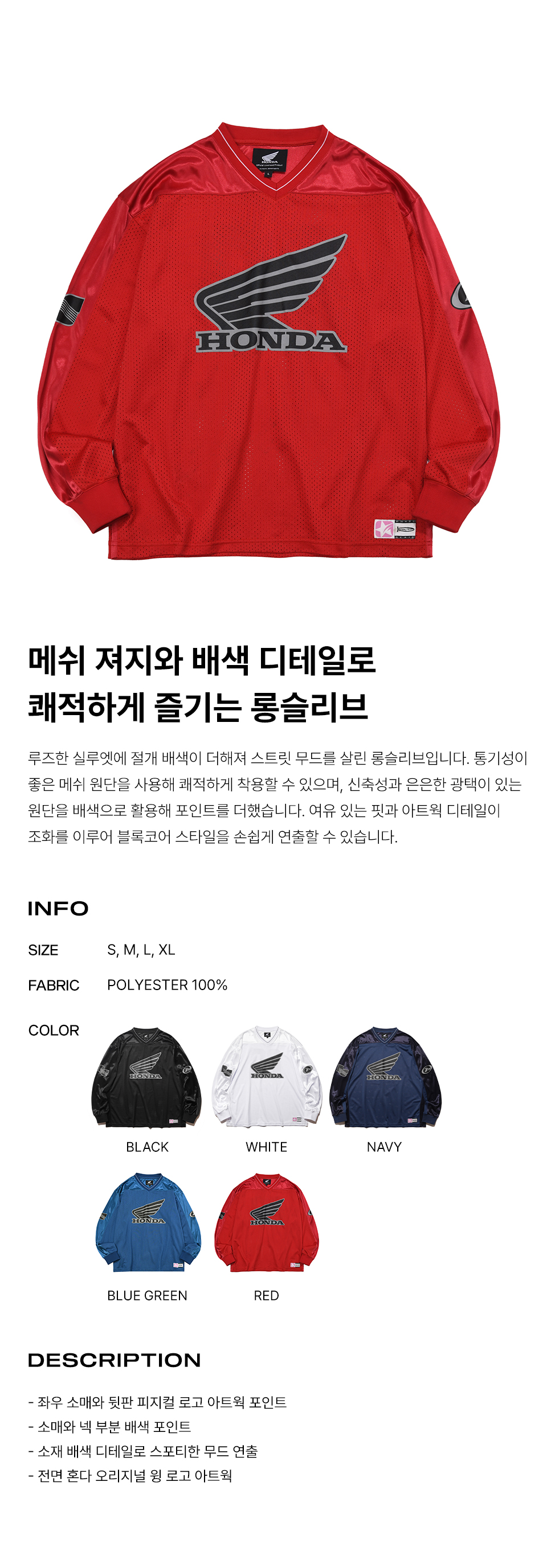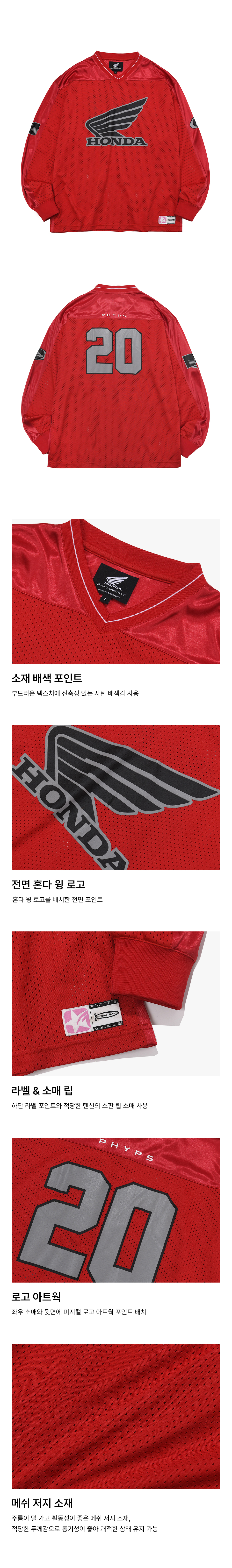 혼다 오리지널 윙 로고 메쉬 롱 슬리브 레드