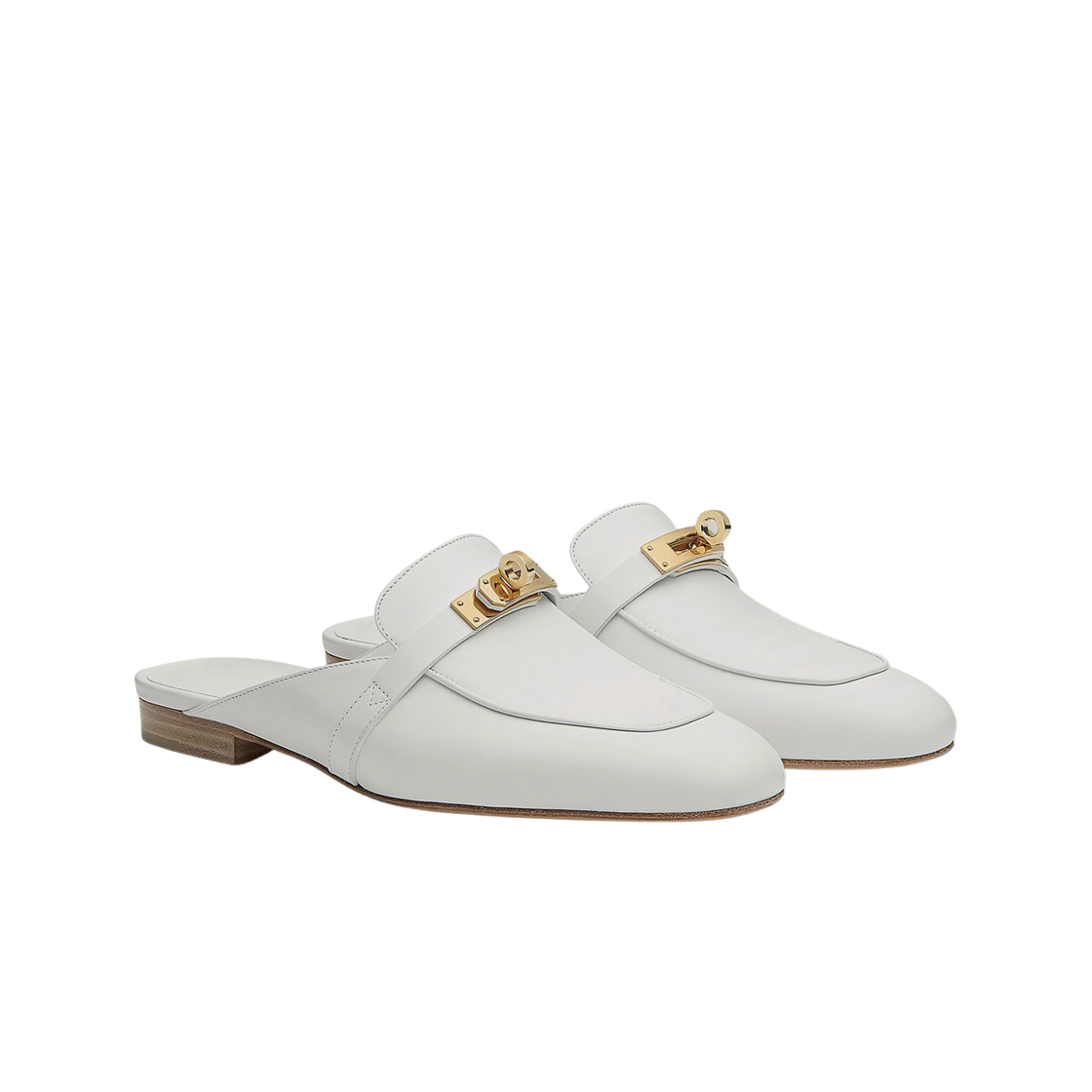 (W) Hermes Oz Mule Calfskin & Permabrass Blanc
