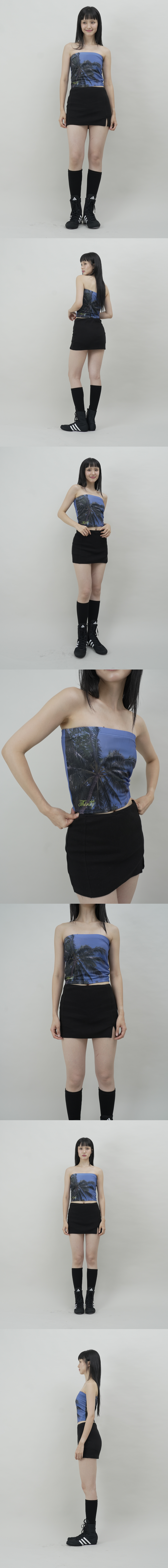 Santa monica beach 에서 디렉터가 필름으로 담아낸 야자수입니다. 튜브탑 상단 내부에는 밴드가 내장되어 있어 쉽게 흘러내리지 않으며 안착이 되도록 디자인했습니다. 일상복은 물론 스윔웨어로도 활용이 가능합니다. 내부에 패드가 없는 홑겹 튜브탑입니다.