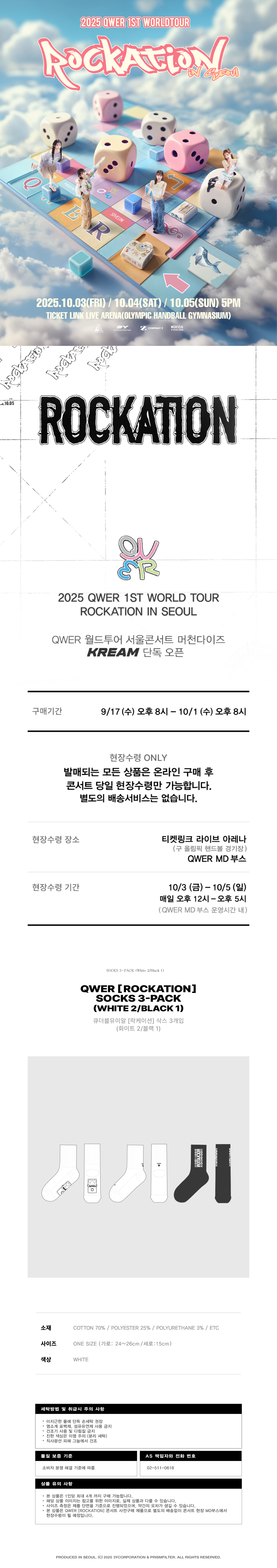 본 상품은 QWER [ROCKATION] 콘서트 사전구매 제품으로 별도의 배송없이 콘서트 현장 MD부스에서 현장수령이 될 예정입니다.