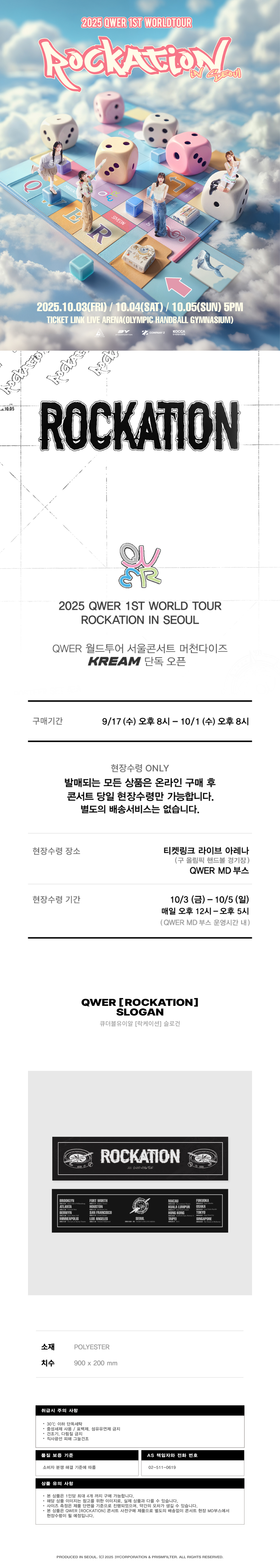 본 상품은 QWER [ROCKATION] 콘서트 사전구매 제품으로 별도의 배송없이 콘서트 현장 MD부스에서 현장수령이 될 예정입니다.