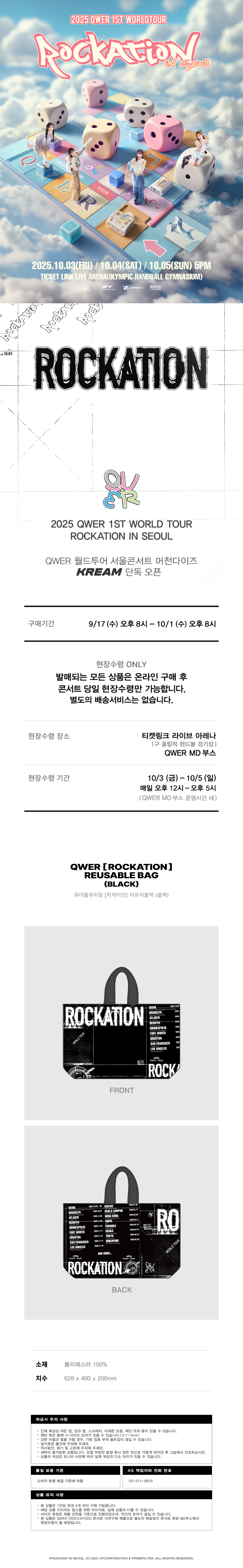 본 상품은 QWER [ROCKATION] 콘서트 사전구매 제품으로 별도의 배송없이 콘서트 현장 MD부스에서 현장수령이 될 예정입니다.