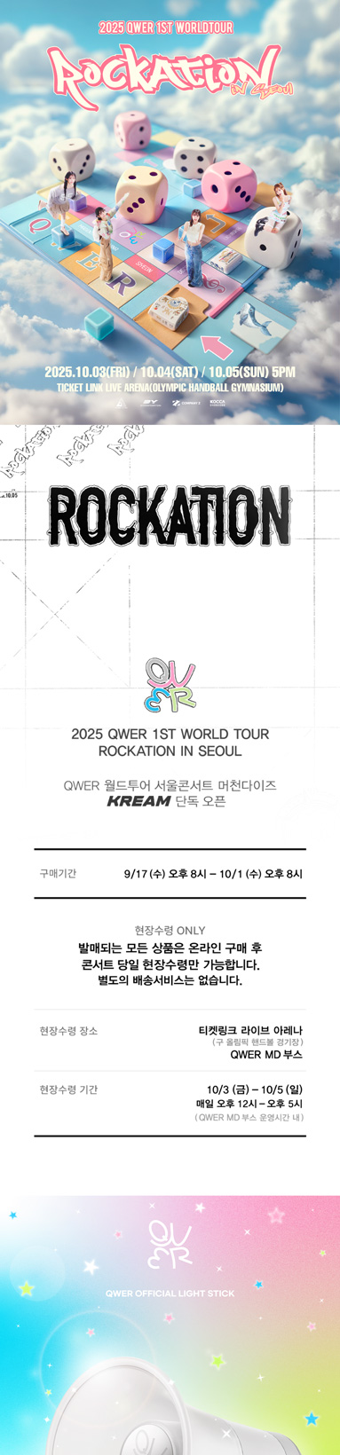 본 상품은 QWER [ROCKATION] 콘서트 사전구매 제품으로 별도의 배송없이 콘서트 현장 MD부스에서 현장수령이 될 예정입니다.