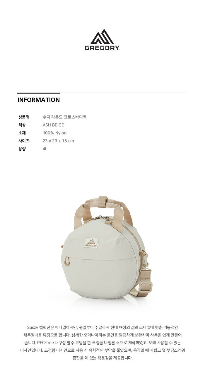그레고리 수지 라운드 크로스바디백 애쉬 베이지 4L