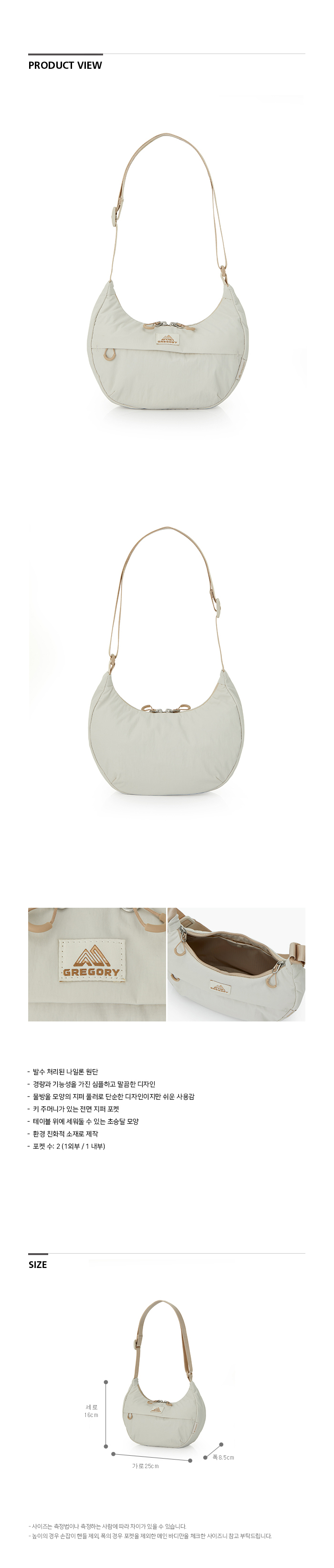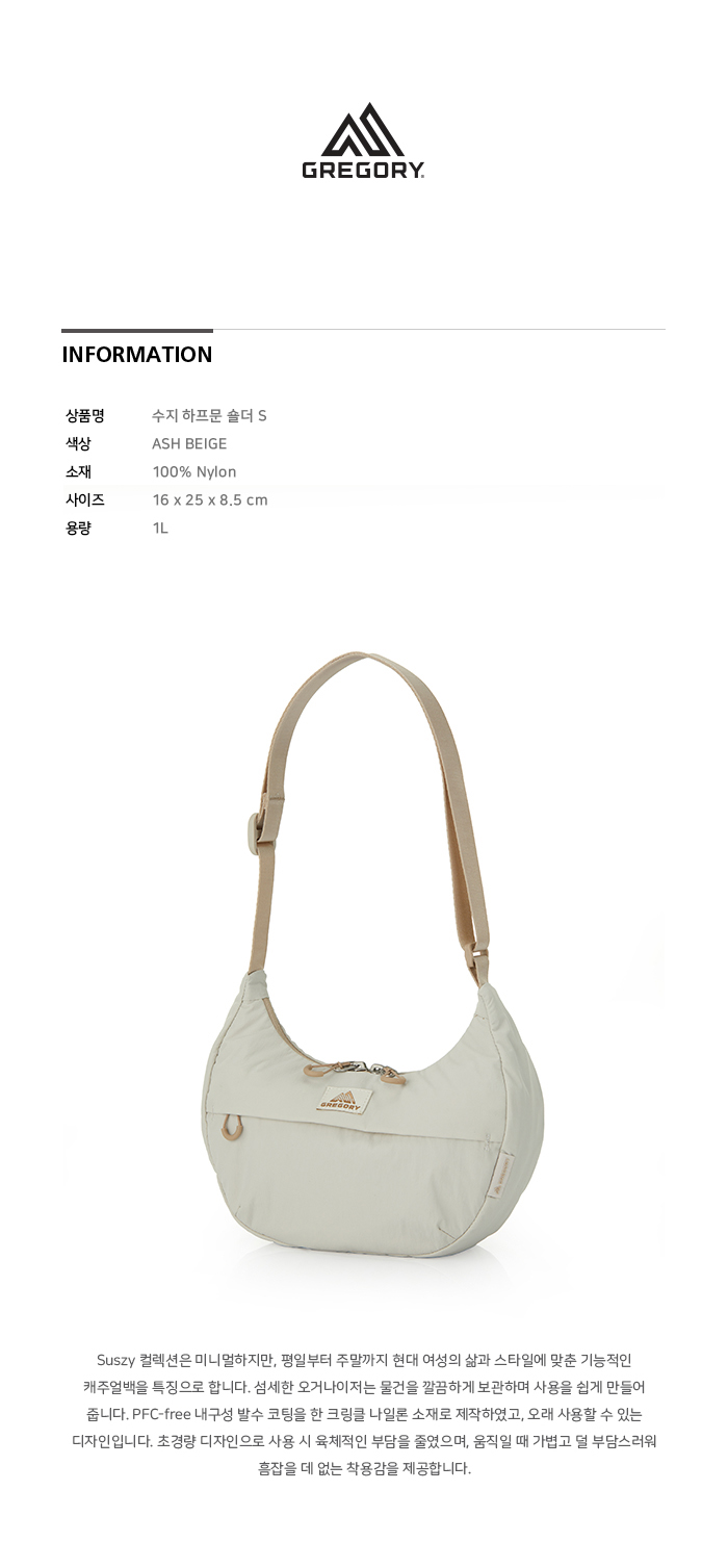 그레고리 수지 하프문 숄더백 S 애쉬 베이지 1L