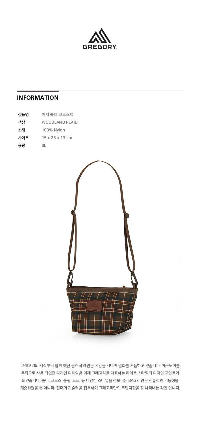 그레고리 이지숄더 크로스백 우드랜드 플래드 3L