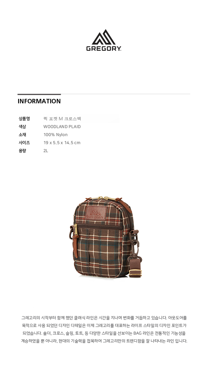 그레고리 퀵포켓 M 우드랜드 플래드 2L