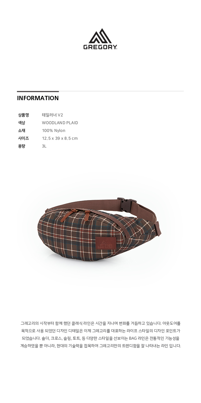 그레고리 테일러너 V2 우드랜드 플래드 3L힙색