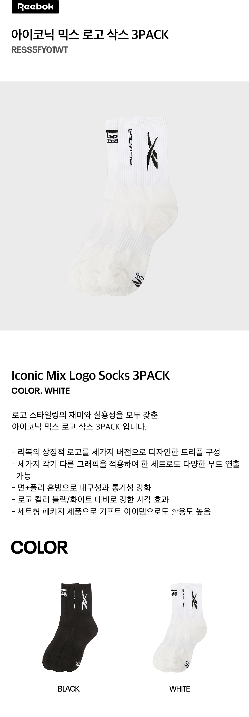 리복 아이코닉 믹스 로고 삭스 3PACK 화이트