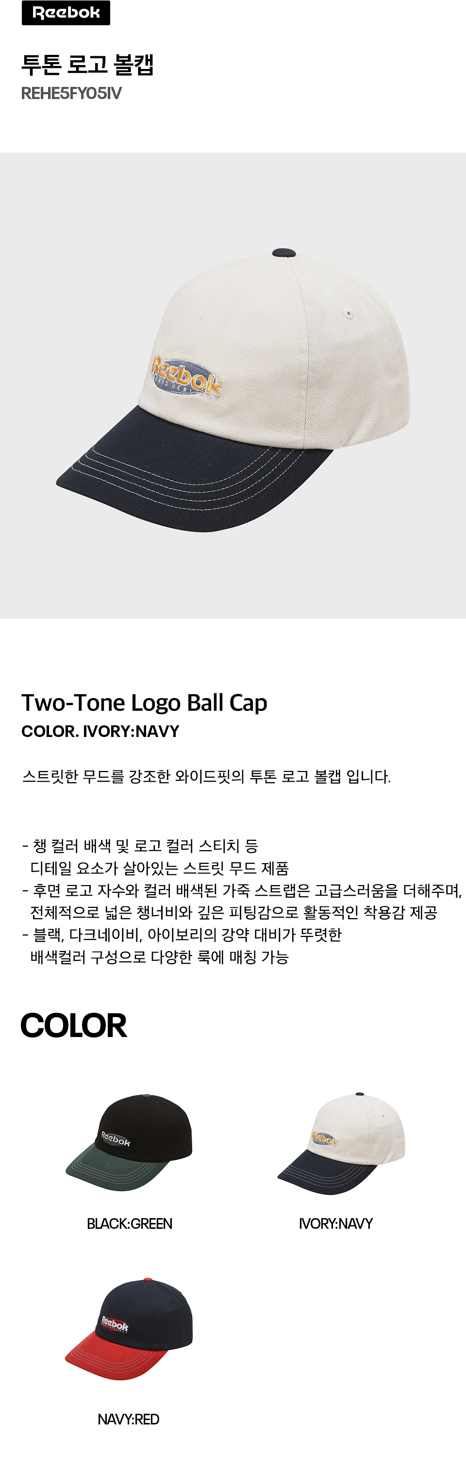 리복 투톤 로고 볼캡 아이보리 네이비